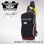 リモンタナイロン、イタリアンバリスティックナイロン(スポーツカーのシート部分にも使用されている生地)、イタリアンレザーを使用した縦型ボディーバッグ。メイン、両側面には湾曲したユニークなファスナーを使用、より物の出し入れが行いやすい仕様になっています。